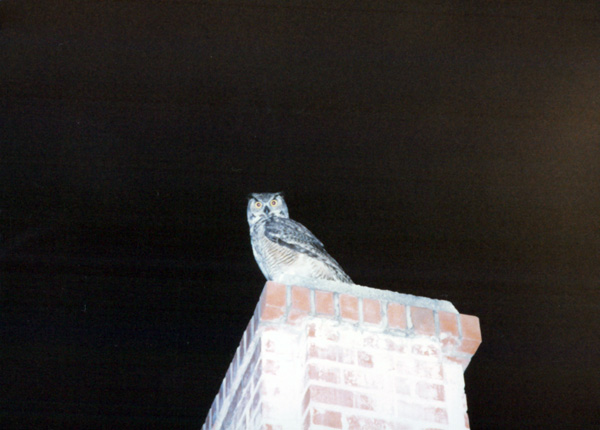 This owl tried to get our dog Christopher when we lived in Los Angeles. John took his photo after I scared him out of his dive.